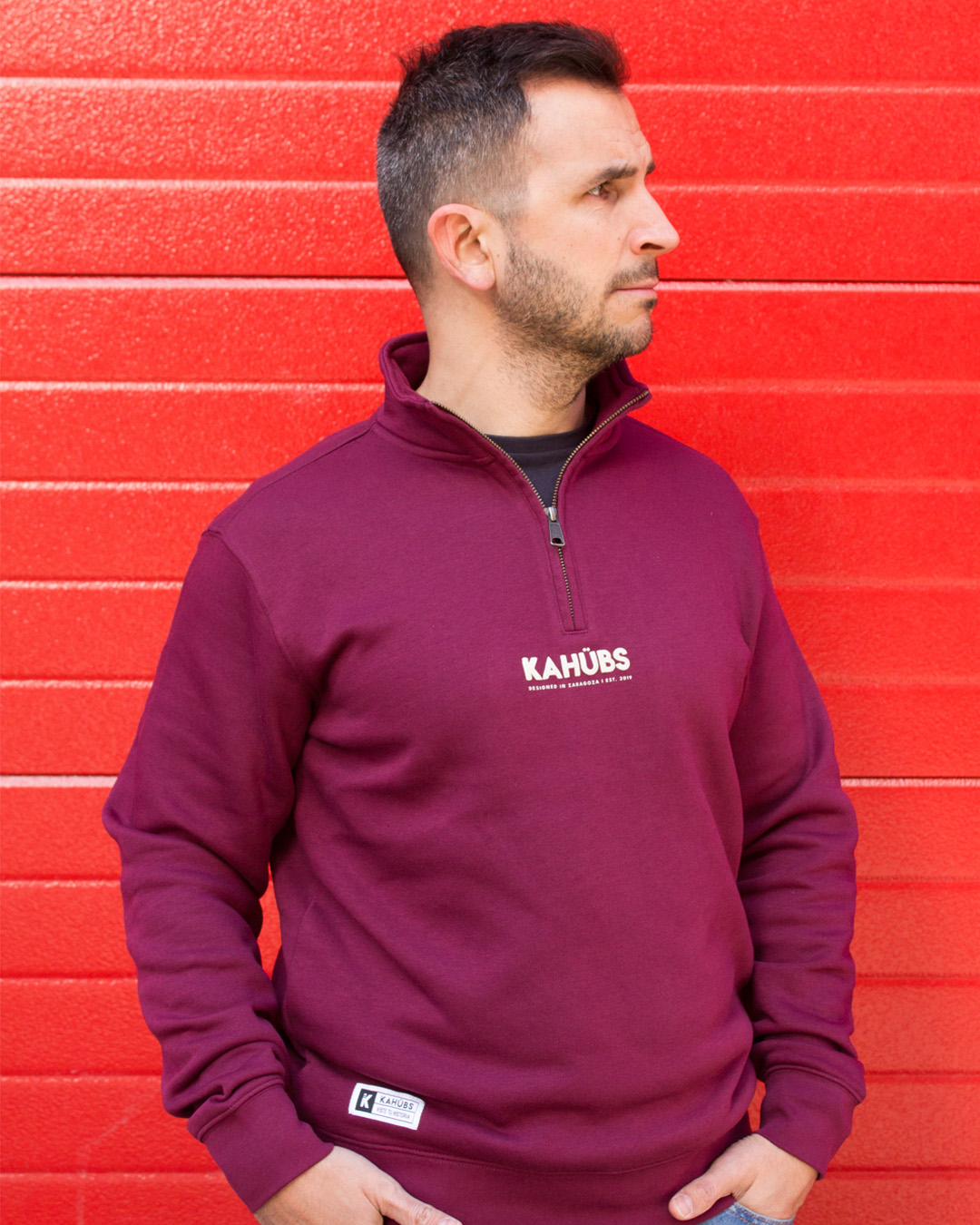 Sudadera cuello alto con media cremallera. Corte holgado. Confeccionada en 70% algodón y 30% poliéster | 280gr. Presenta estampación en el torso del logo de la marca en relieve.